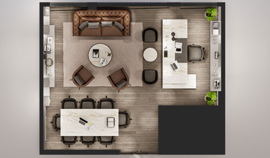 Müdür odası, işlevselliği ve konforu bir araya getirerek liderlik atmosferini vurgular. Modern aydınlatma çözümleri ve özel mobilyalar, bu alanı marka değeri ve prestij ile öne çıkaran unsurlardan biri haline getirir.