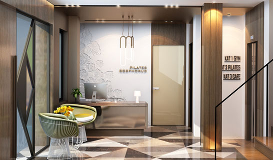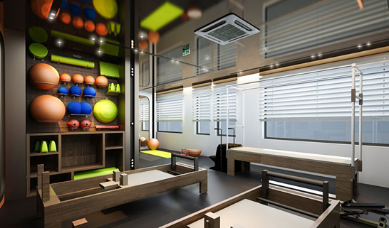 The second floor houses a pilates studio. This studio is specially designed for flexibility and balance exercises, providing a comfortable and peaceful setting. The pilates studio offers a quiet and calm atmosphere, allowing users to perform their workouts optimally.