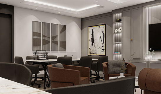 Müdür odası, işlevselliği ve konforu bir araya getirerek liderlik atmosferini vurgular. Modern aydınlatma çözümleri ve özel mobilyalar, bu alanı marka değeri ve prestij ile öne çıkaran unsurlardan biri haline getirir.