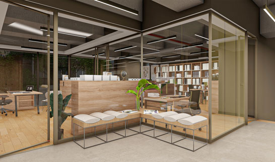 Zemin katta, müşteri deneyimini zenginleştirmeyi amaçlayan satın alma birimi ve etkileyici bir showroom bulunmaktadır. Bu alanlar, ürünleri sergileme, müşteri etkileşimini optimize etme ve marka değerini vurgulama amacı taşıyan tasarım unsurlarıyla öne çıkarılmıştır. Estetik açıdan çekici bir atmosfer yaratmanın yanı sıra, pratik kullanım ve düzenleme özellikleri de dikkate alınmıştır.