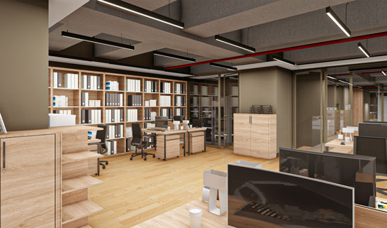 Asma katta ise, işlerin sorunsuz yönetilmesini sağlamak amacıyla idari ofisler bulunmaktadır. Bu alanlar, iş süreçlerini destekleyen ergonomik düzenlemeler ve modern ofis tasarımıyla şekillendirilmiştir. İdari ofisler, hem işbirliğini hem de çalışanların verimliliğini artırmayı hedefleyen bir düzen içermektedir.